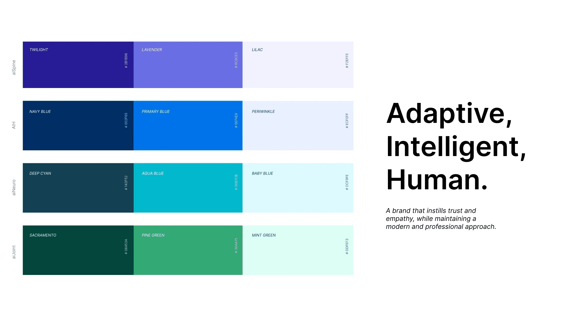 AIH's cool-toned color palette is paired with simple, rounded sans-serif typography to create a welcoming, approachable feeling.