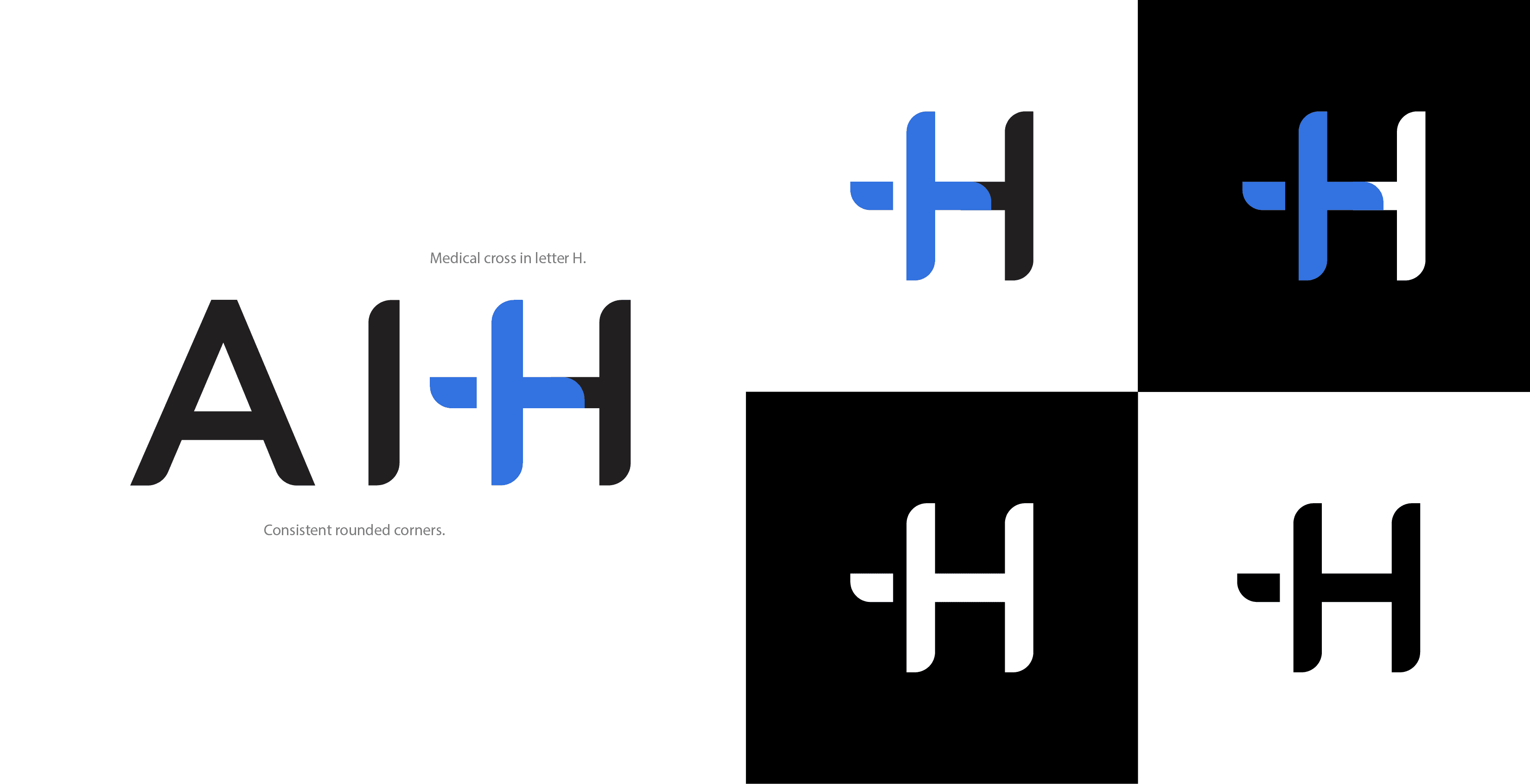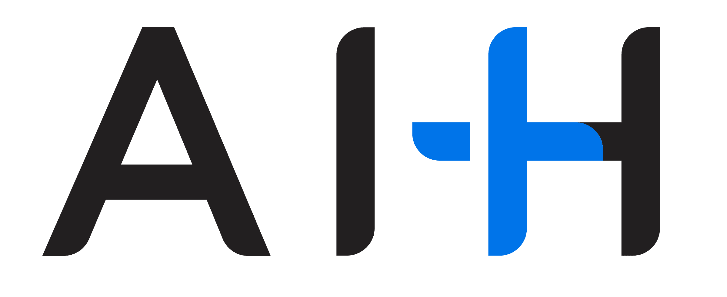 AIH brings together AI technology and healthcare, which is reflected in the logo. The primary blue of the main logo is representative of technology and reliability, and cross H is representative of the healthcare focus.