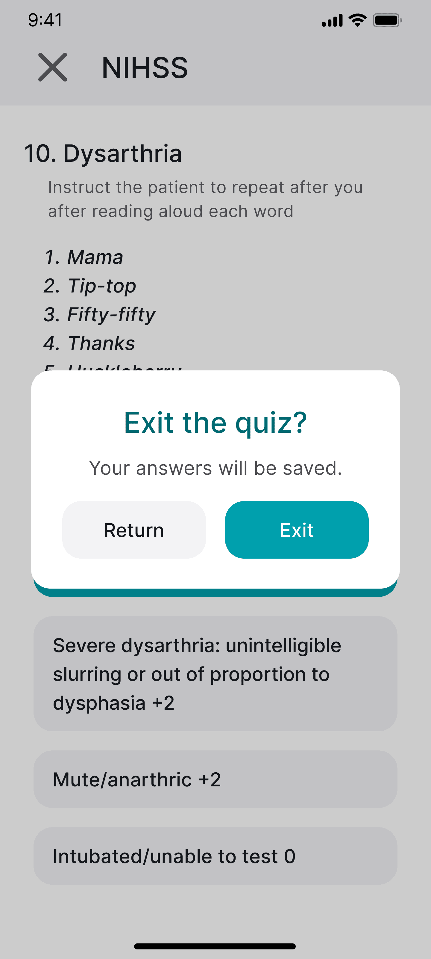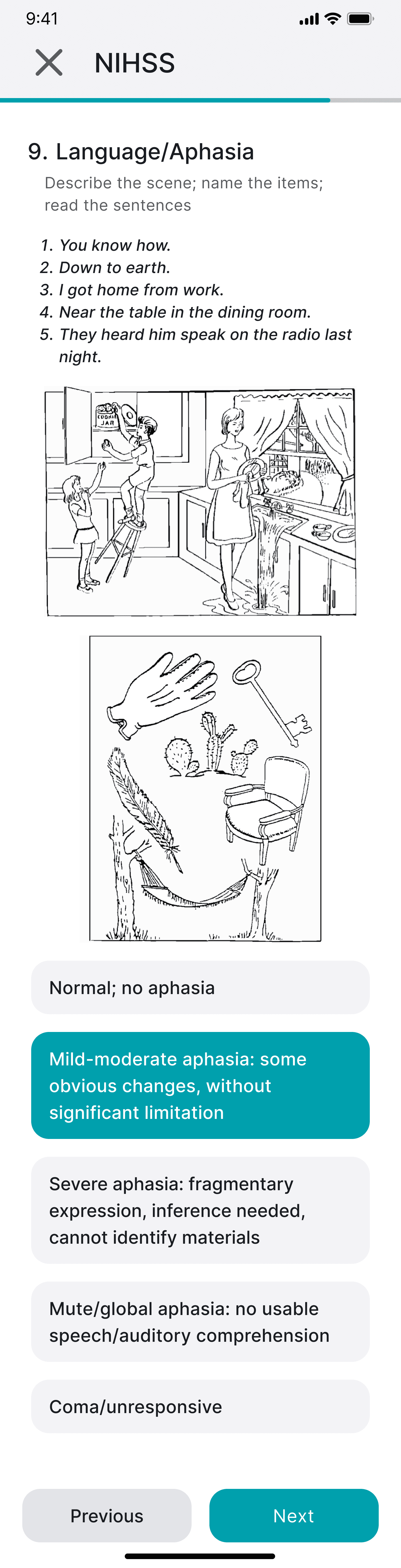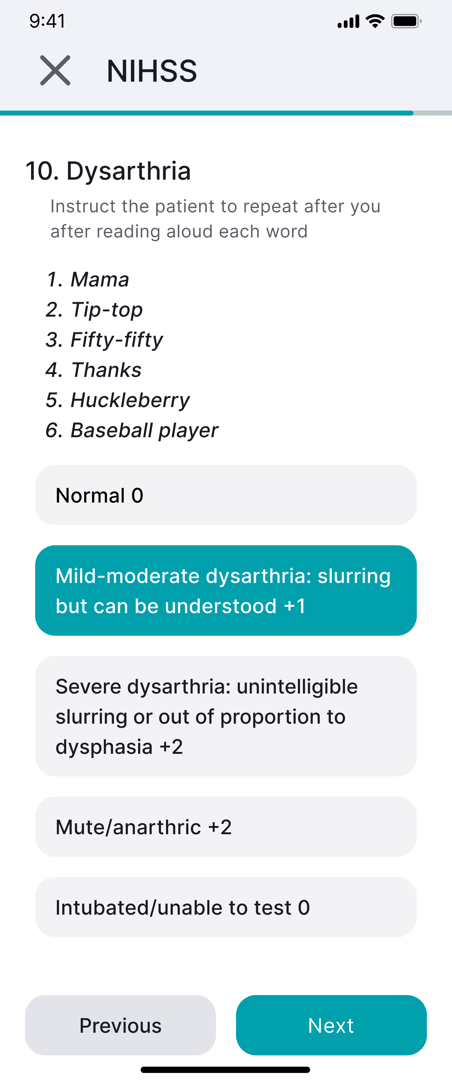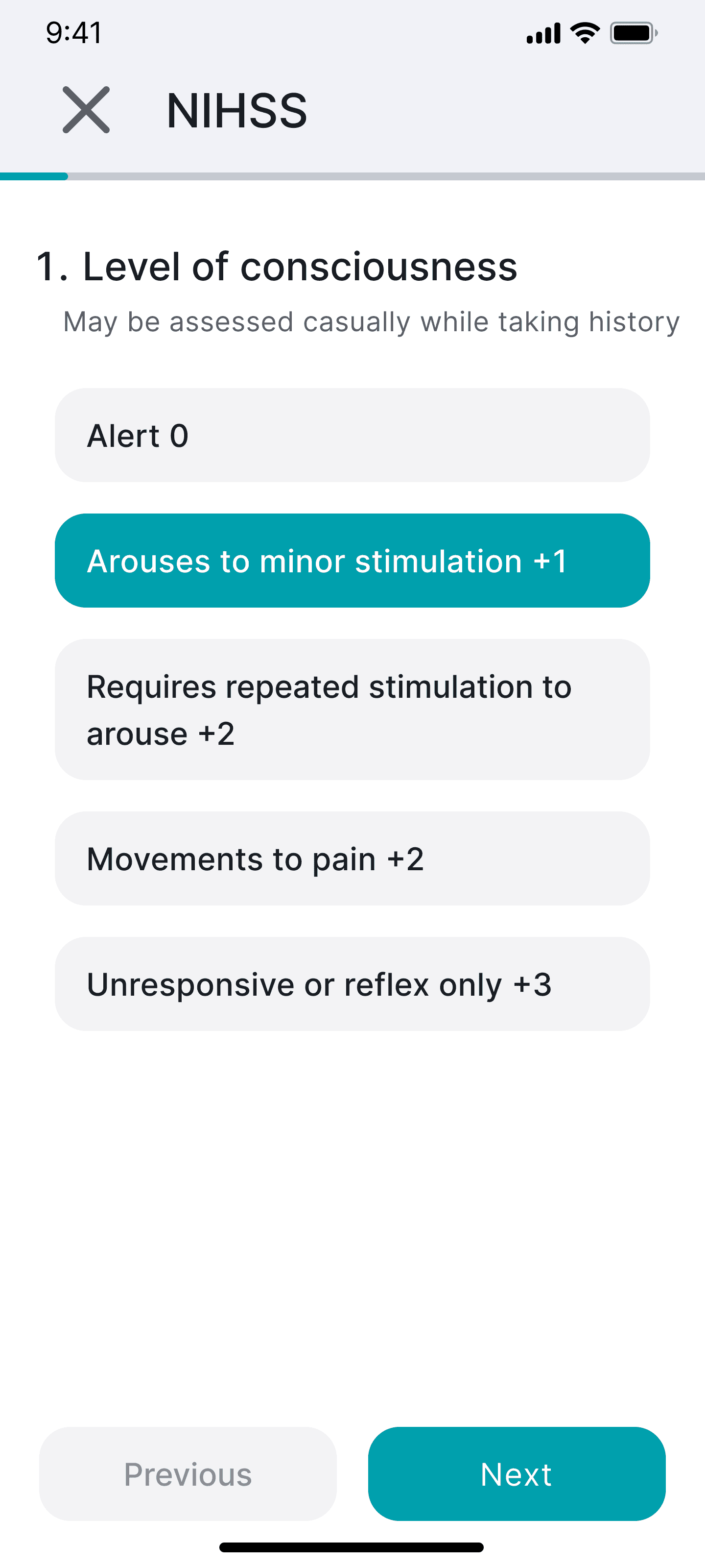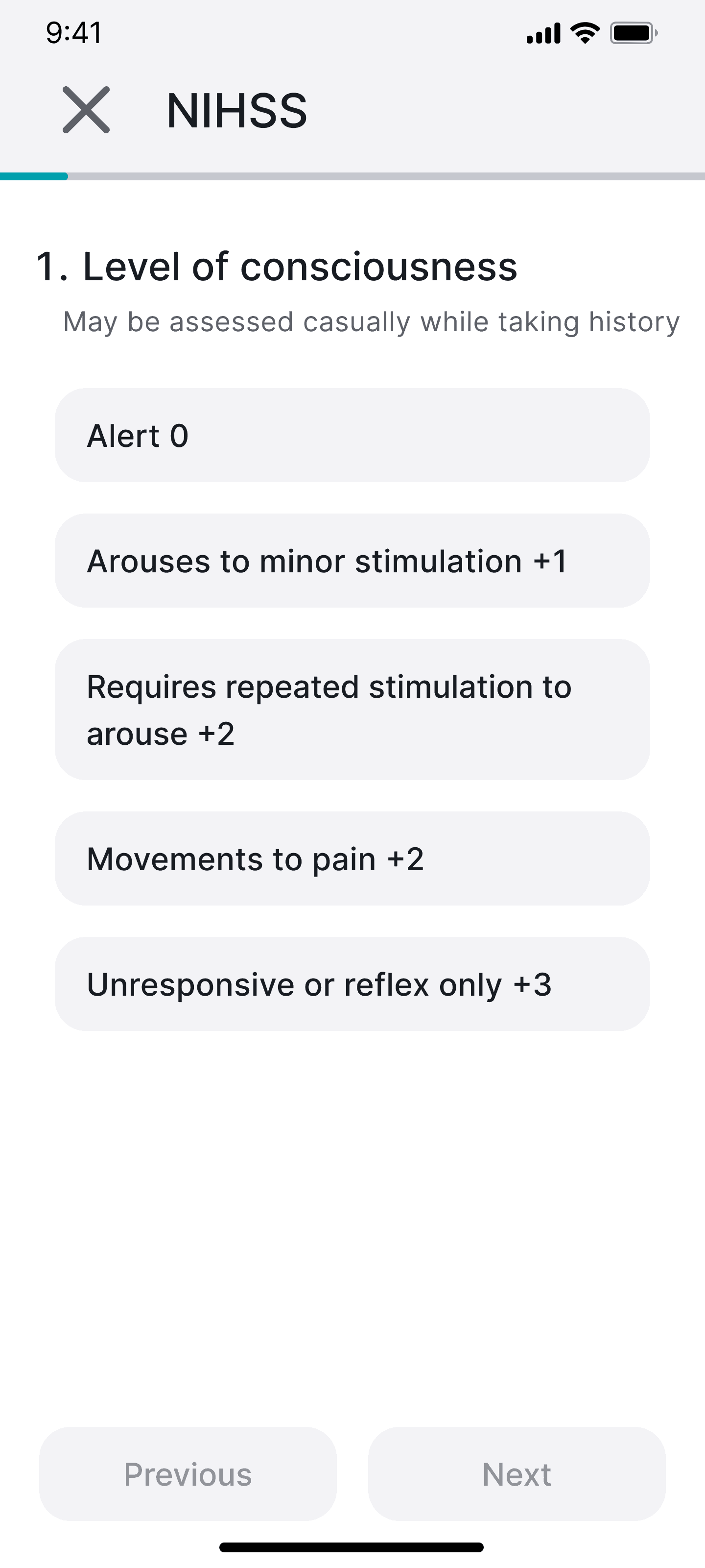 A mobile version of the National Institutes of Health Stroke Scale (NIHSS), a systematic, quantitative assessment tool to measure stroke-related neurological deficit.