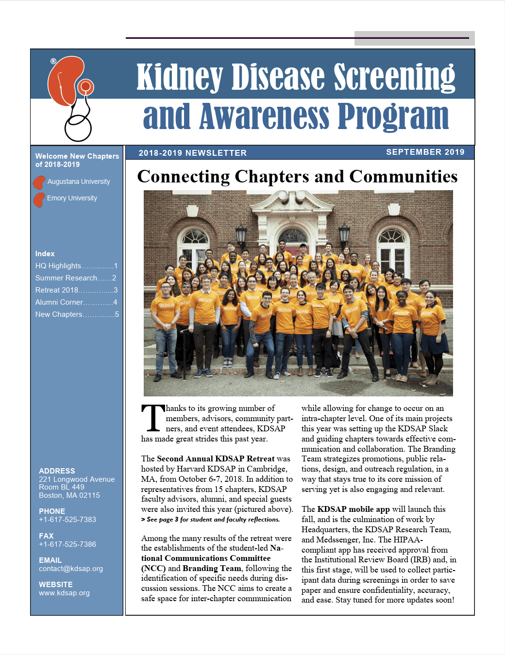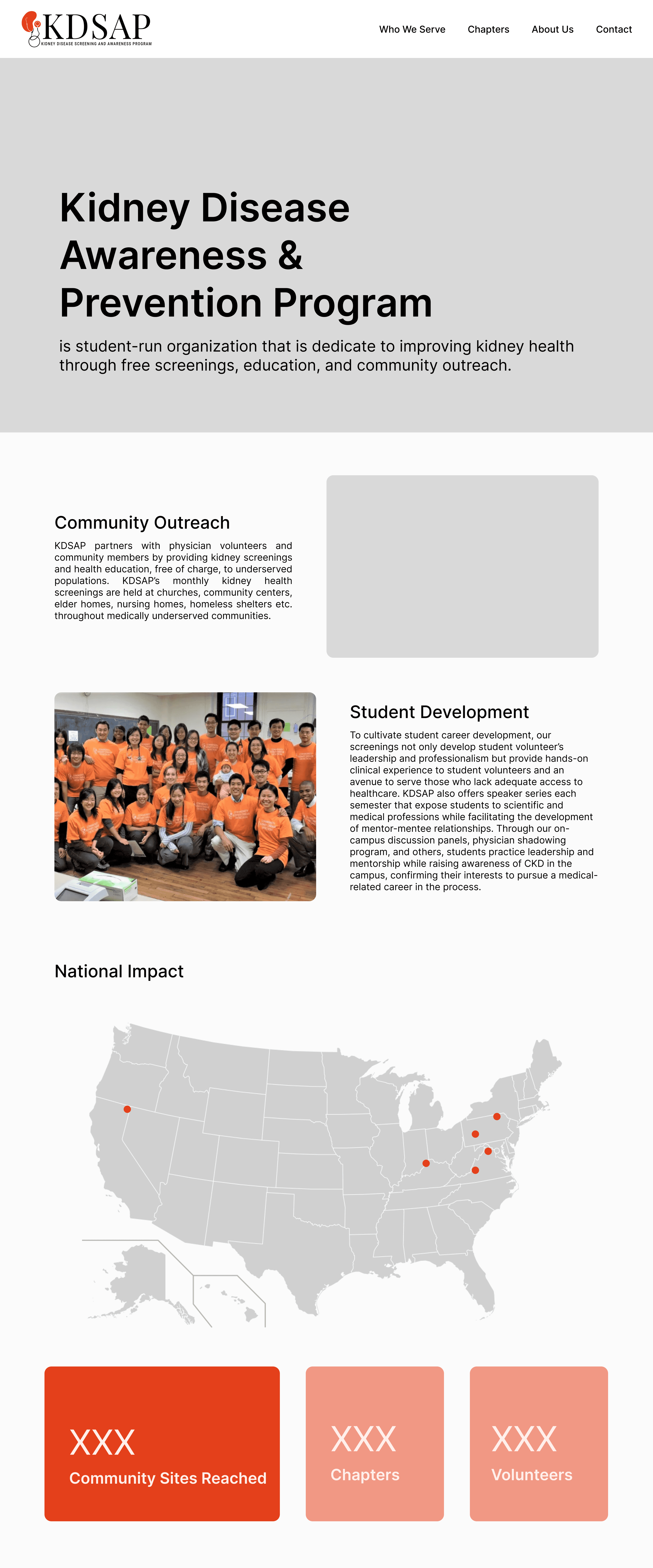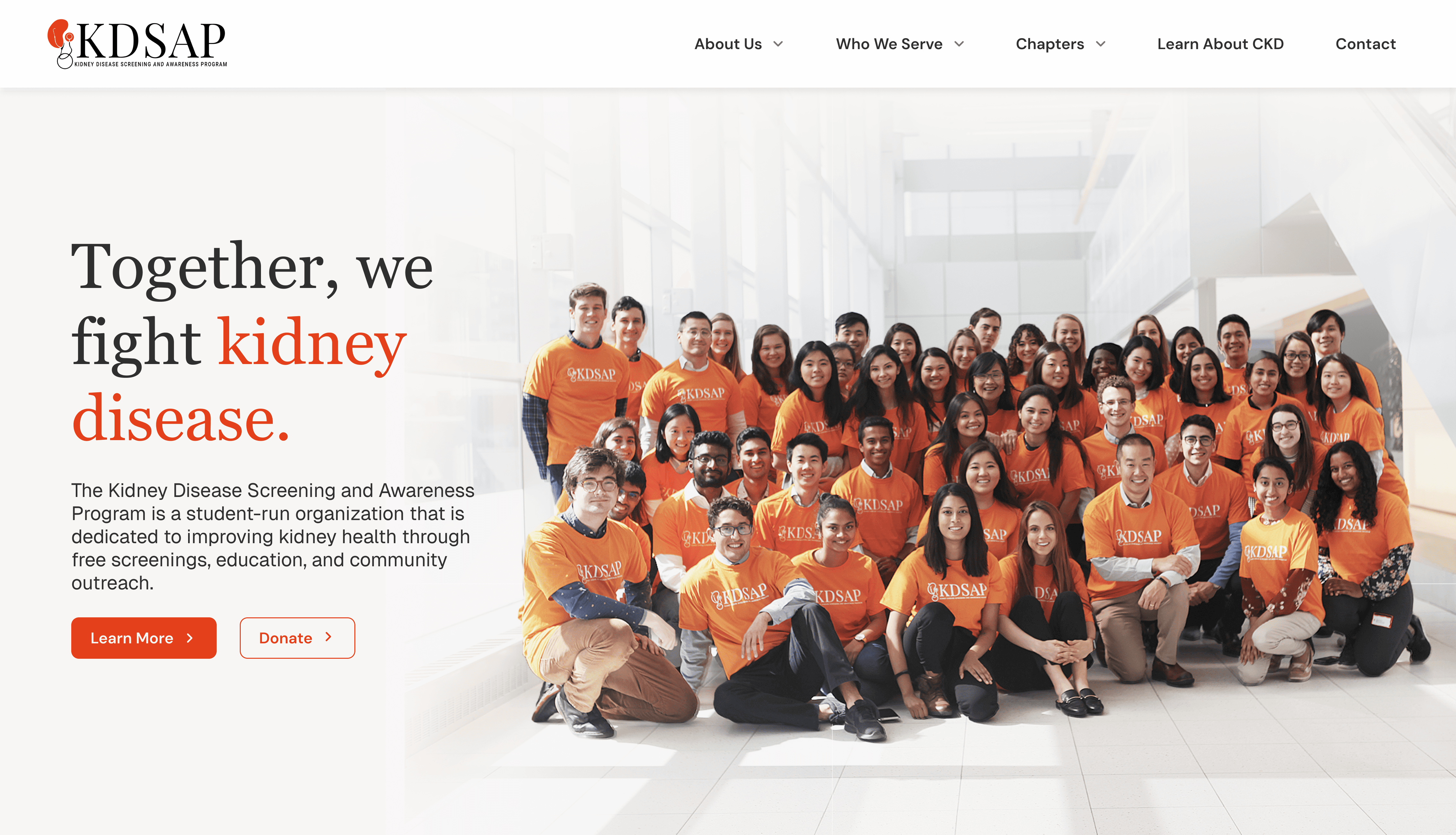 As a part of the National Communications Committee for the Kidney Disease Screening and Awareness Program (KDSAP), I led the redesign of the national website to create a more user-friendly, efficient, and visually cohesive interface. The project aimed to enhance the navigation experience for students, community members, and the general public while amplifying KDSAP’s impact in kidney health education and outreach.