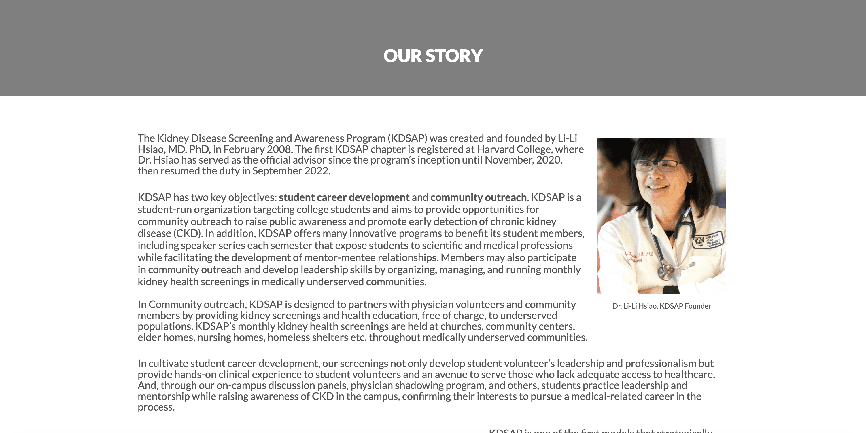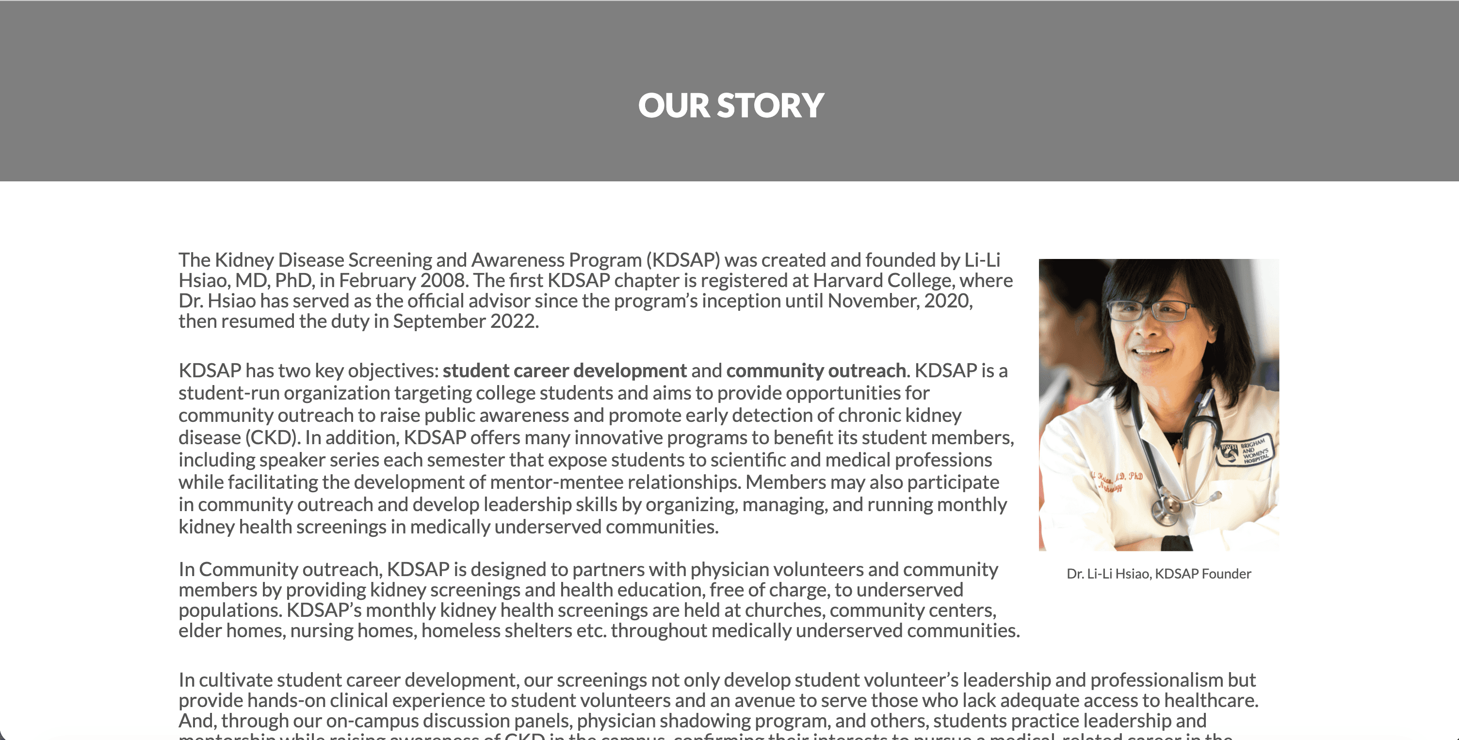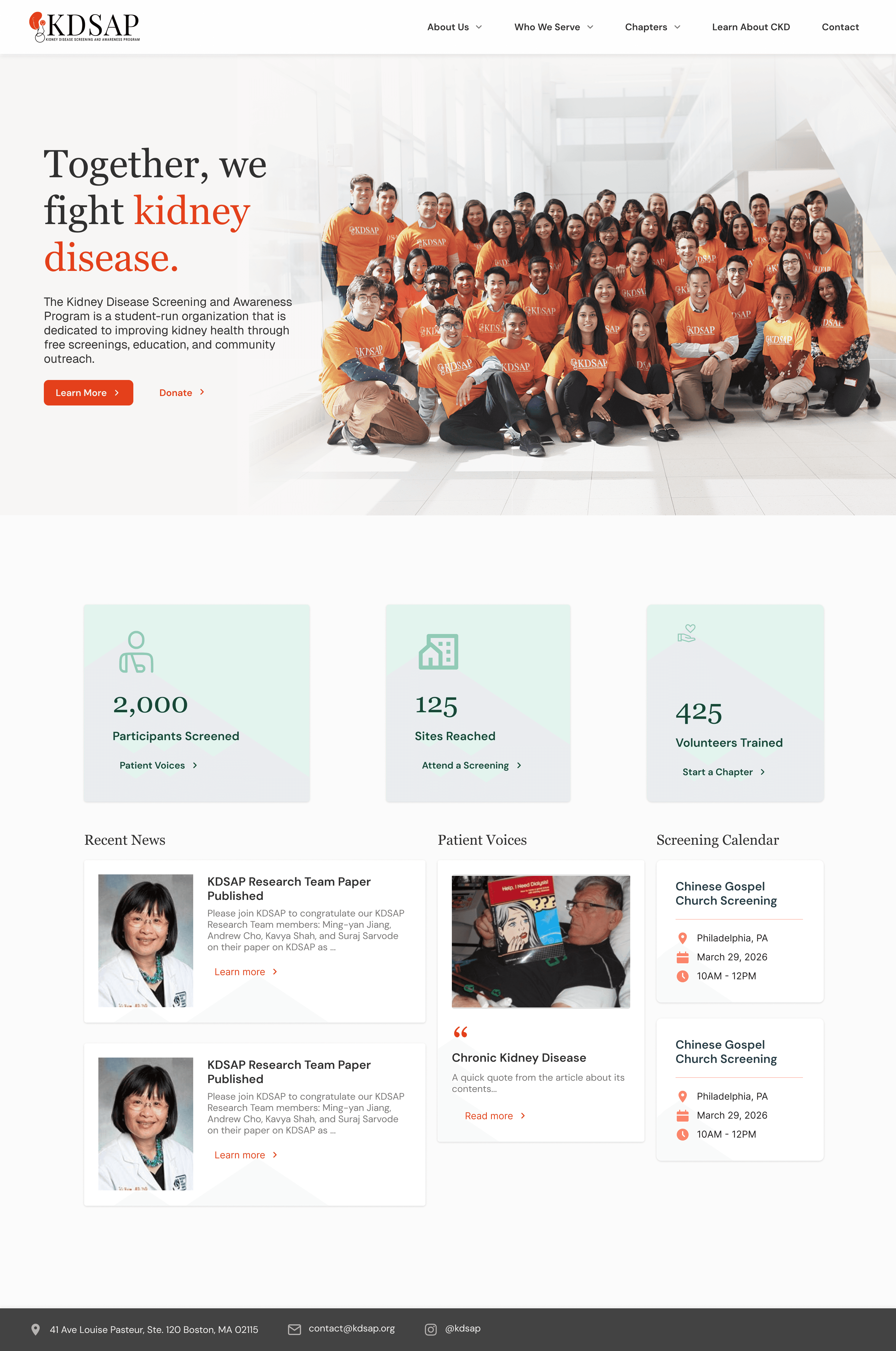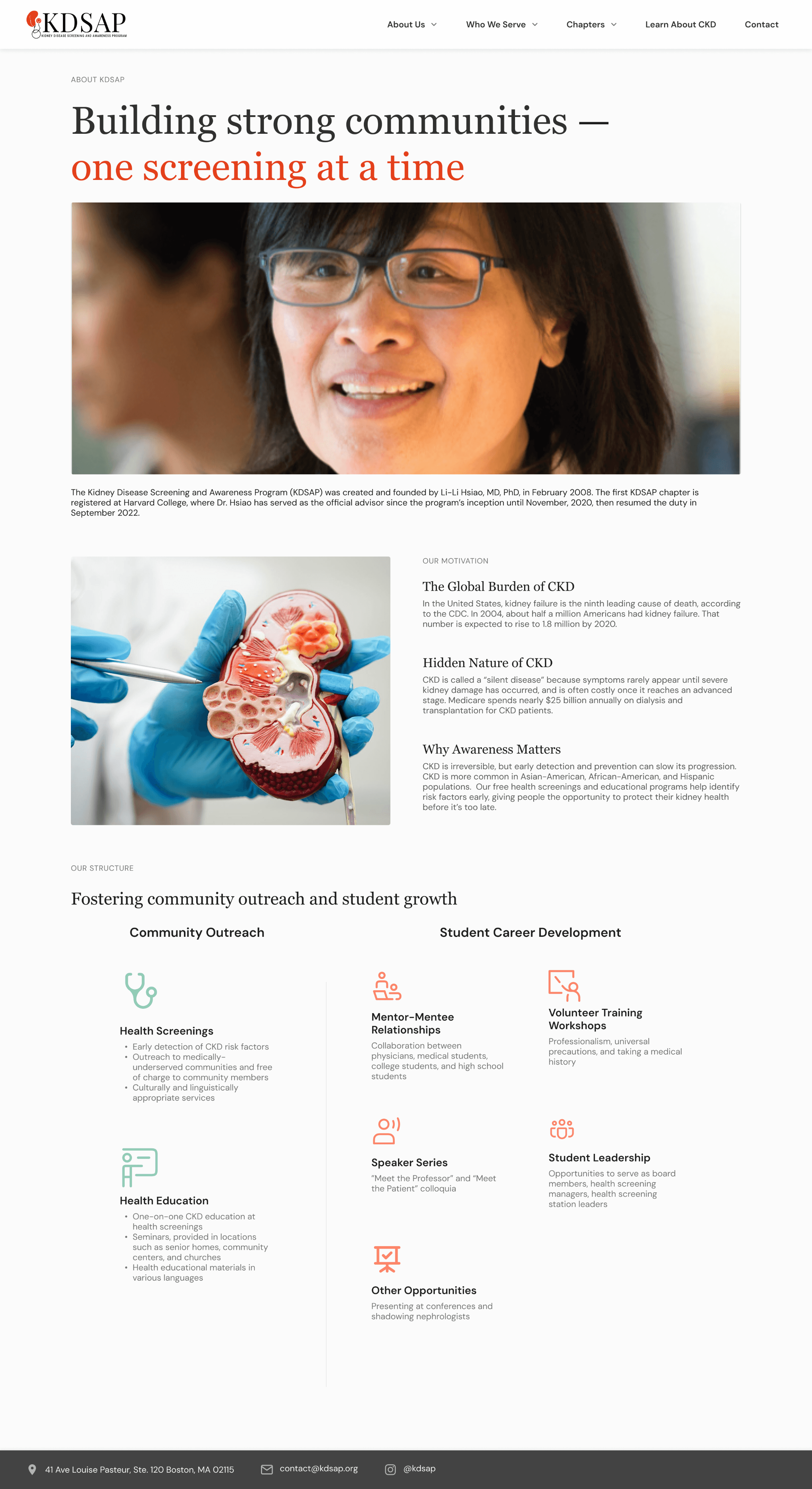 For potential attendees of the screening or community leaders interested in hosting a collaboration with a KDSAP chapter, the website needed to convey credibility, impact, and trust of our efforts.